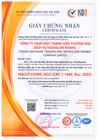 CÔNG TY TNHH MTV TM DV HOÀNG AN KHANG hoạt động trong lĩnh vực thu mua, chế biến và xuất khẩu hạt điều